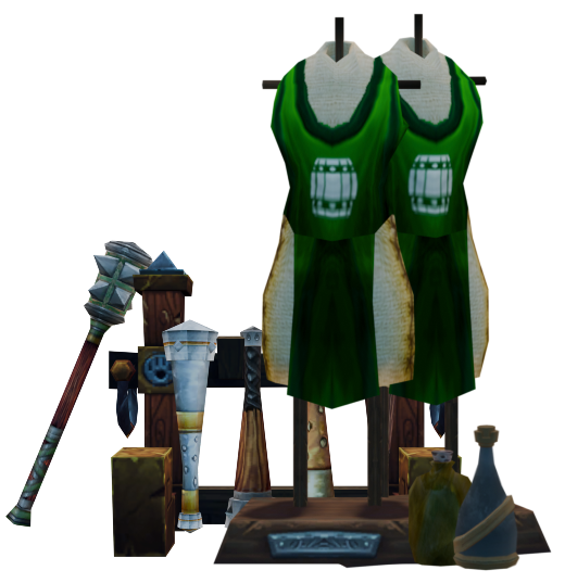 Unlike the other roles within the Tavern, Bouncers are kitted out with a uniform that is more suited towards their role. Due to this, a background check will be conducted on the individual in order to verify that they can be trusted with the allotted equipment.Further to this point, due to some 'issues' in the past, the weapons listed here are ones that are deemed ' suitable' and 'non-lethal' by the local authority.Desired Uniform- Little Pandaria Tabard